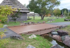 エクステリア床板、地覆、幕板には合成木材を使った橋を納入。二風谷アイヌ文化博物館(北海道)