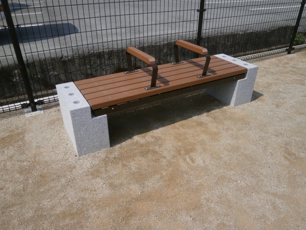 その一つの本公園に災害時にテントをかけて救護室などにできる「防災パーゴラ」、災害時にかまどとして使用できる「かまどベンチ」を納入しました。