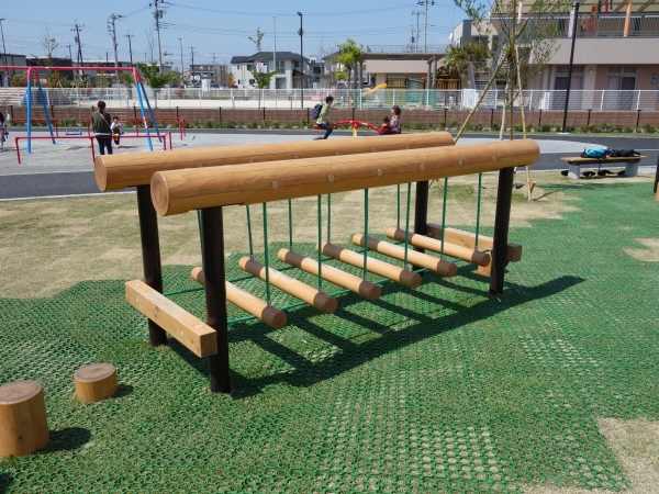 公園施設/エクステリア Park / Exterior TOP公園施設/エクステリア施工実績遊具袖ケ浦駅海側地区近隣公園(千葉県) 袖ケ浦駅海側地区近隣公園(千葉県) 印刷 千葉県袖ヶ浦市の袖ヶ浦駅近くに新しい公園ができ、そこに当社のアスレチック遊具を納入しました。 ゆれる(連続渡り)、くぐる(ネットトンネル)、のぼる(あみだネット)の機能にあわせ遊具は3種類あります。 遊具の柱には防錆処理をしたスチールを使用し、保存処理木材と組み合わせたテツモク遊具。さらに高い耐久性を確保しています。 2021年施工 【担当営業所】営業本部景観エクステリア部 TEL 03-3254-0832 カテゴリ 遊具 関連画像 ゆらゆら渡り ゆらゆら渡り ゆらゆら渡りから次の遊具へ ネットトンネル あみだネット あみだネット