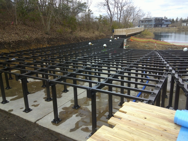 公園施設/エクステリア Park / Exterior TOP公園施設/エクステリア施工実績デッキ国営備北丘陵公園(広島県) 国営備北丘陵公園(広島県) 印刷 広島県庄原市にある国営備北丘陵公園の国兼池周囲の木道を当社でリニューアルしました。 柱や下地は溶融亜鉛めっき処理を行ったスチールを使用し、床板、柵にペンタキュアECO30木材保存処理を行った杉材を使用しています。 2024年施工 【担当営業所】広島営業所 TEL 0829-20-1567 カテゴリ デッキ 関連画像 全景 デッキ部 施工中(柱は鋼材) 施工後 柱、下地部(鋼材) 木道