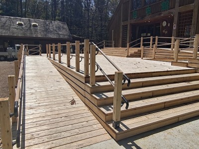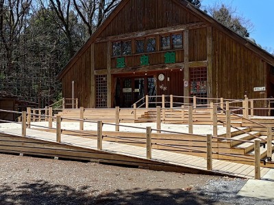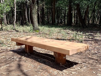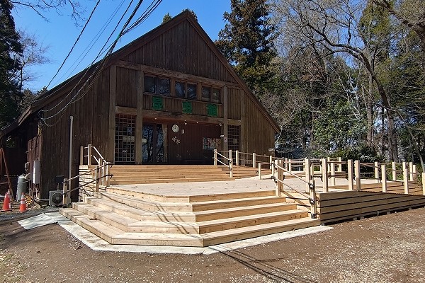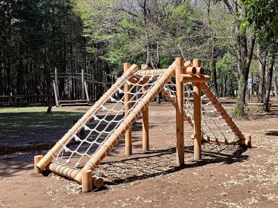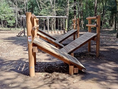 この度この昆虫館前のデッキを当社で改修いたしました。スロープが設置されているため車いすやベビーカーの利用者も容易にアクセスすることができます。また、公園内に設置するアスレチック遊具とベンチも当社でリニューアルしています。
