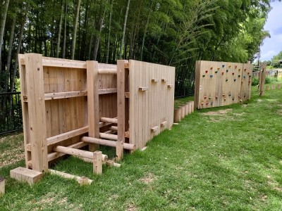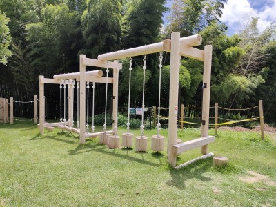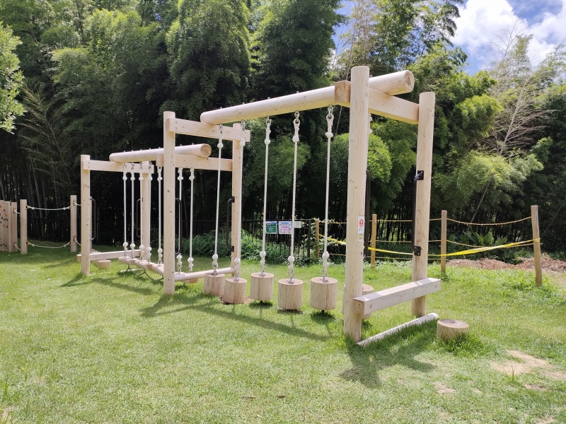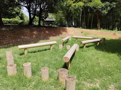 アスレチック遊具は単体で設置してもその機能を発揮しますが、遊具を連続的に配置することで、より効果的に、遊びながら運動の楽しさを味わうことができます。今回のような直線型の配置ではスタートとゴールを設定し、どこまで渡れるかチャレンジすることで、個人のペースで好奇心や達成心を育むことが出来ます。