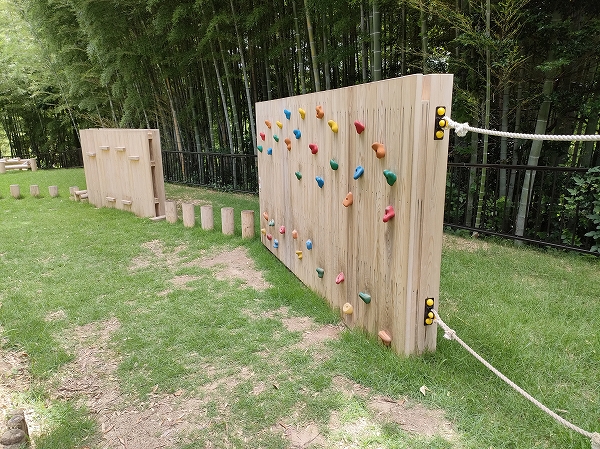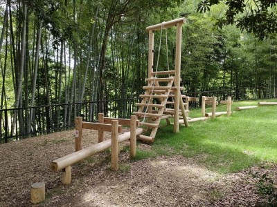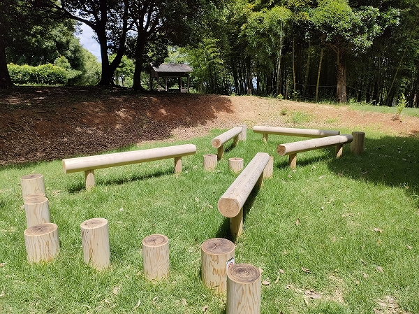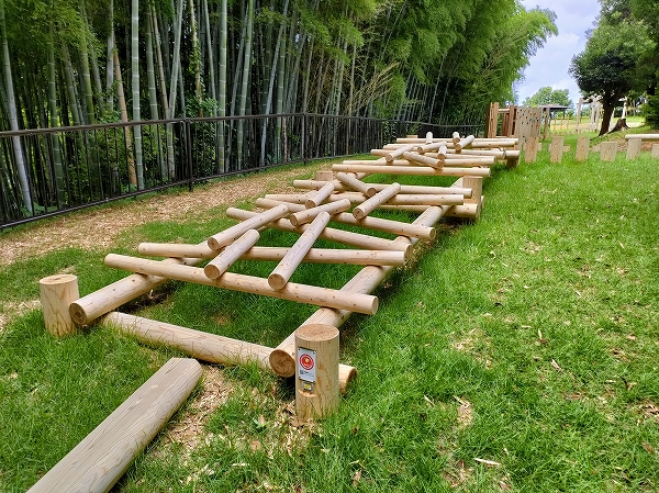 愛知県知多市にあるベティさんの家旭公園の遊具リニューアルにあたって、当社のアスレチック遊具を納入いたしました。既存遊具6点と同様の機能をグレードアップしたアイテムを6点配置し、これを平均台や丸太ステップで接続した連続型となっています。
