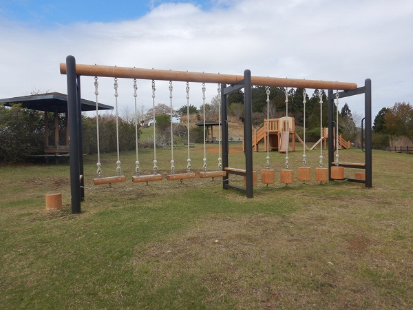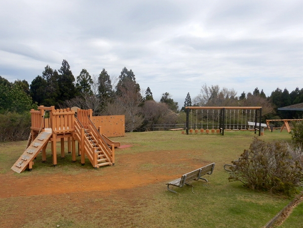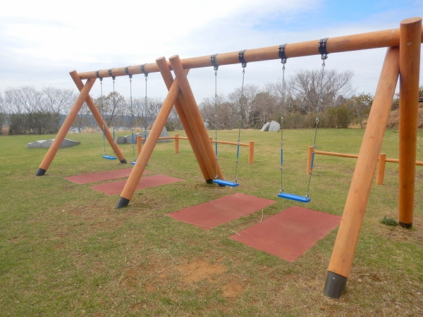 宮城県石巻市のおしか番所公園は、牡鹿半島の先端にある公園です。江戸時代には仙台藩が外国船の襲来に備えて見張り所を設置していたことが名前の由来となるほど眺めがよく、展望塔からは牡鹿半島の全景が眺望できます。この公園に、当社のコンビネーション遊具「もくもくトリデ」、アスレチック遊具、ぶらんこを納入いたしました。アスレチック遊具は、木部の木材保存処理に加えて、柱にスチール(亜鉛めっき防錆処理)を使い耐久性を高めたテツモク遊具です。もくもくトリデとぶらんこは、柱脚金物仕様としています。