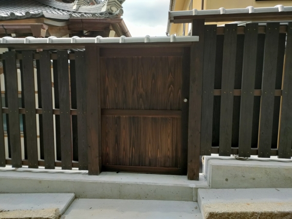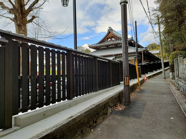 公園施設/エクステリア Park / Exterior TOP公園施設/エクステリア施工実績板塀京都市内寺院(京都府) 京都市内寺院(京都府) 印刷 京都府京都市内の寺院の外周に当社の板塀を納入しました。 境内脇の小道との境界の板塀です。緩い坂道になっており、板塀は数スパンごとに段々にあげていく方式となっています。途中には門扉(出入口)を設けています。柱にも杉のECO30保存処理材を使用した天然材料による板塀で、古都京都の景観によくなじみます。 2024年施工 【担当営業所】大阪営業所 TEL 072-439-4413 カテゴリ 板塀 柵・門扉 関連画像 全景 上から見下ろす 正面から 扉 段差(瓦は別途) 風情ある小道(フォトスポット)