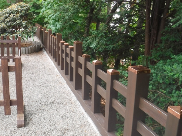 公園施設/エクステリア Park / Exterior TOP公園施設/エクステリア施工実績柵・門扉札幌市内神社(北海道) 札幌市内神社(北海道) 印刷 北海道札幌市内の神社の木柵の改修にあたり当社の木柵を納入いたしました。デザインは改修前のものに合わせています。柱頭に取り付けた銅板キャップは、意匠的な魅力を増すだけでなく、木口の保護の役割も果たします。 木材は国産杉材にペンタキュアECO30を加圧注入処理したものを使用しています。歴史ある神社などの「日本らしさ」を感じさせる空間には、天然の木材を使用した製品を設置することで、風情のある景観によくなじみます。 2024年施工 【担当営業所】北海道営業所 TEL 0143-27-1264 カテゴリ 柵・門扉 関連画像 改修前 改修後 直線部 コーナー部 銅板キャップ 境内と柵