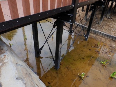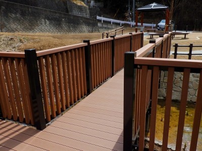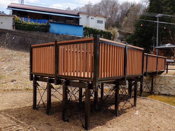 長野県松本市にある下池公園に、当社の観察デッキを納入いたしました。通路から繋がる広々とした観察デッキでは、自然に囲まれて爽快感を味わいながら休憩することができます。鋼材の躯体に、合成木材の床板を使用しています。
