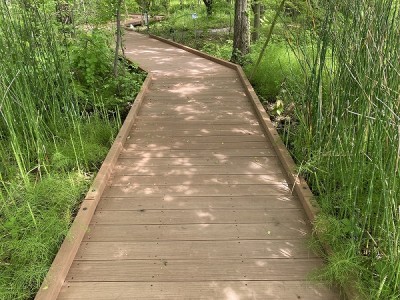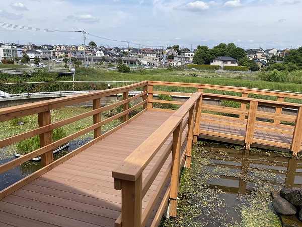 埼玉県にある大宮南部浄化センターおよび、併設された環境学習施設「みぬま見聞館」において、木道を当社でリニューアルいたしました。来館者が施設内を安全かつ快適に散策できるよう、既存の動線やコース形状を踏まえ、現地測量にあわせた設計、製造、施工を行いました。