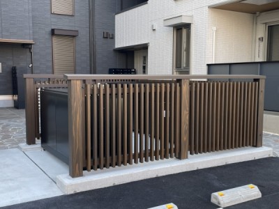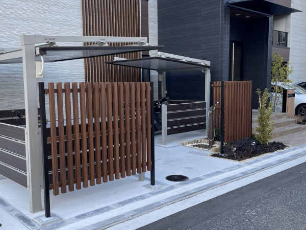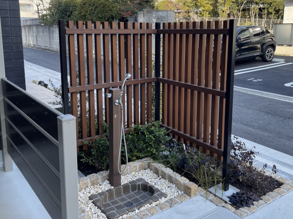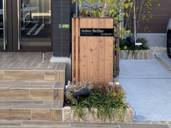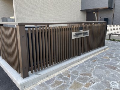 広島県広島市内の集合住宅の外構部に木製フェンス、エントランスサインを納入しました。