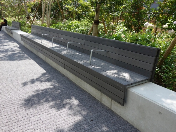 オフィス街の休息スペースにロングベンチを納入(東京都)