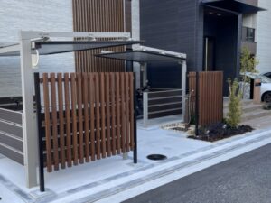 今回、ご紹介するのは広島県内の集合住宅の外構に木製フェンスと木製エントランスサインを納入した事例です。